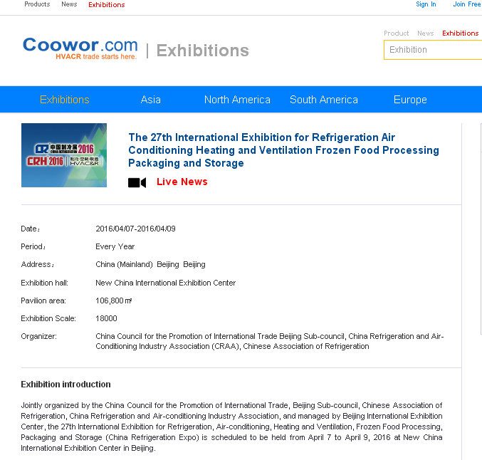 Coowor.com is devoted to providing a cultural exchange platform for domestic and foreign well-known enterprises. We have participated in 12 international HVACR exhibitions in 2016: